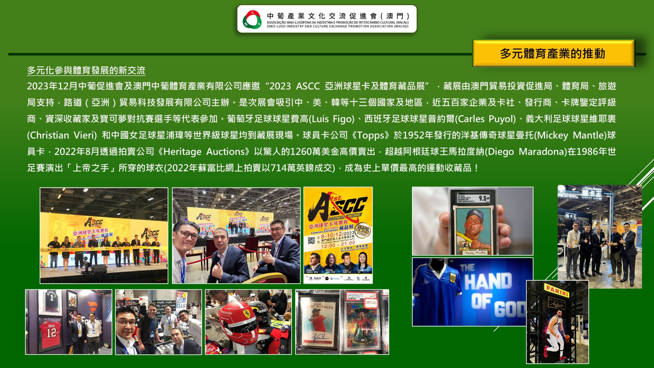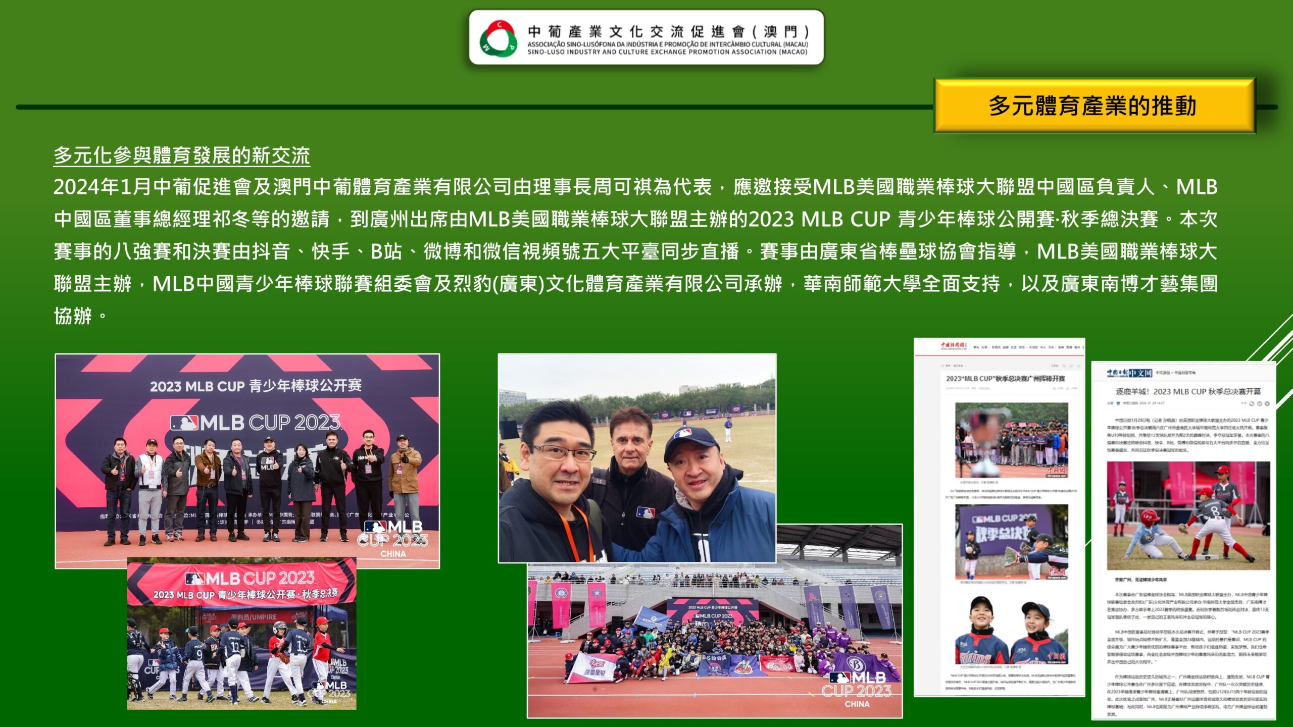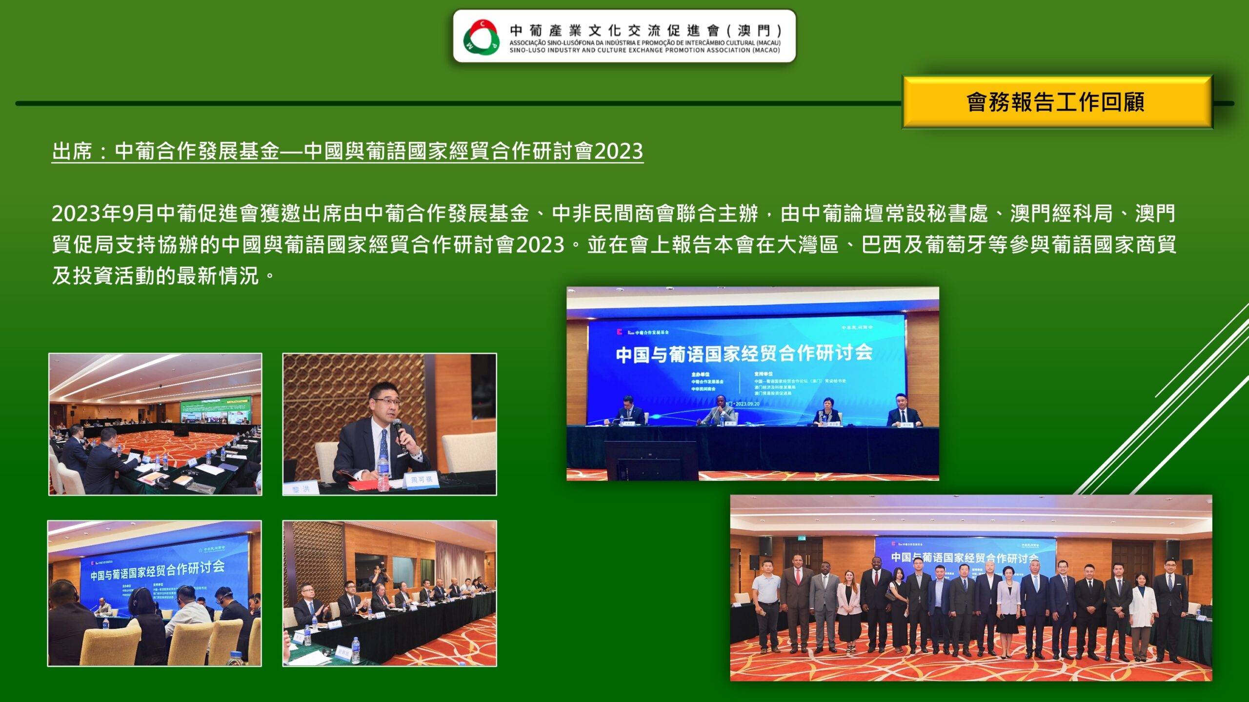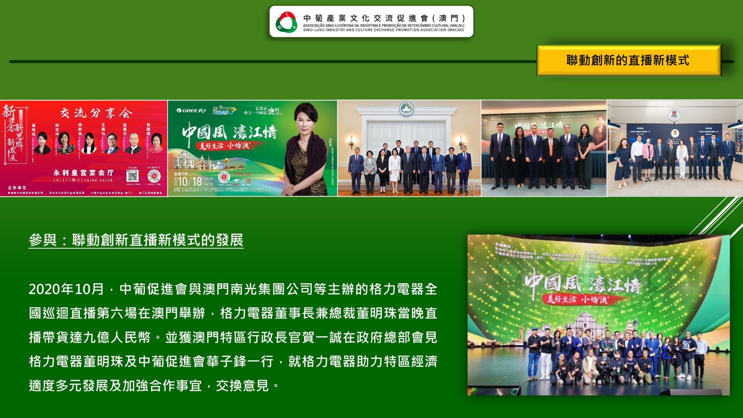 「 中葡產業文化交流促進會(澳門) Associação Sino-Lusófona da Indústria e Promoção de Intercâmbio Cultural (Macau) 」是經澳門特區政府批准、澳門註冊成立的非謀利社會團體,是為了響應國家的《粵港澳大灣區發展規劃綱要》賦予澳門“一中心、一平台、一基地”發展定位,為澳門融入國家發展大局,促進澳門產業多元化,搭建中葡產業,文化領域交流、互動的專業性平台。