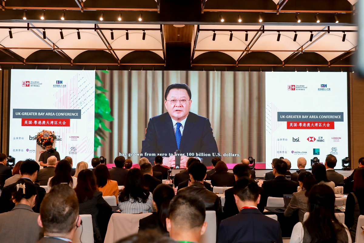 英中貿易協會CBBC與前海國際人才港合作,在深圳舉辦首屆英國-粵港澳大灣區會議 UK-Greater Bay Area Conference。由廣東省人民政府省長王偉中(視頻)、英中貿易協會主席古沛勤爵士Sir Sherard Cowper-Coles、英國駐廣州總領事孟詩然Sarah Mann、廣東省商務廳副廳長朱小軍等致辭。